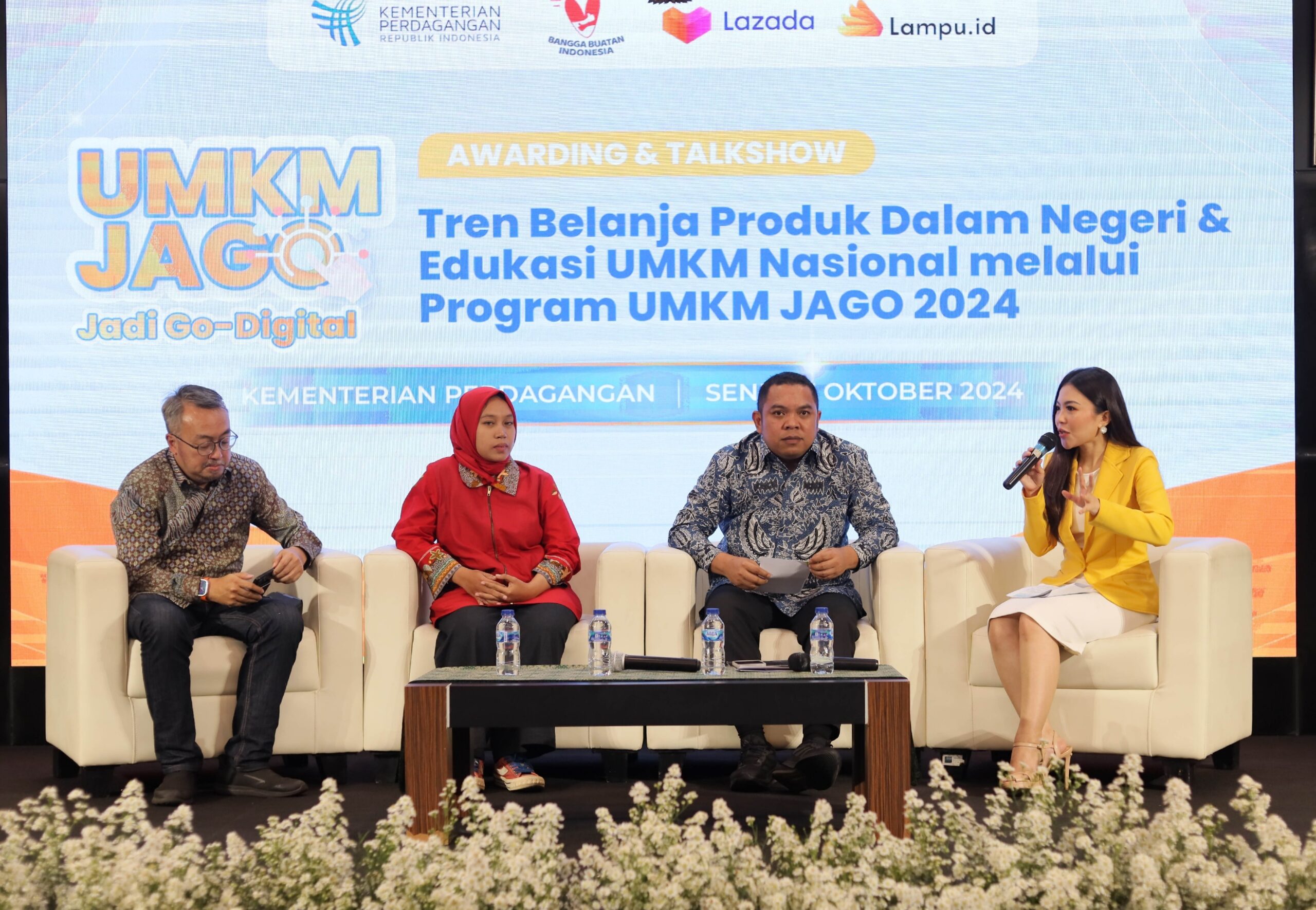 Acara puncak ini diadakan di Auditorium Kementerian Perdagangan, Senin (7/10), dan diisi dengan talkshow: Tren Belanja Produk Dalam Negeri & Edukasi UMKM Nasional melalui Program UMKM JAGO 2024.