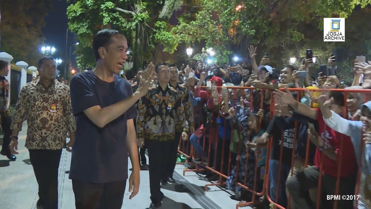 Selain mengundang warga untuk masuk Istana Presiden Gedung Agung, Presiden Joko Widodo juga menyapa warga yang berkumpul di titik nol kilometer atau perempatan kantor pos besar Jogjakarta.